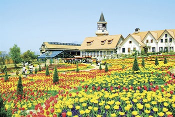 八ヶ岳や南アルプスを見渡す敷地に、春は25万株のチューリップが彩り豊かに咲き誇る。赤や黄色のチューリップが、色鮮やかなじゅうたんのように広がり敷地が春一色に染まる。アニメ「アルプスの少女ハイジ」の世界を忠実に再現したテーマビレッジで、その世界観にどっぷりと浸ることができる。