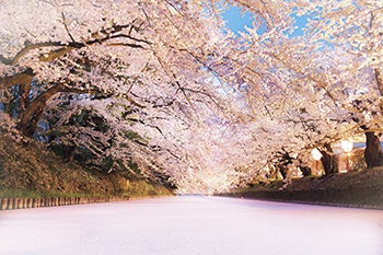 散った桜の花びらで、水面が覆われる外堀の花筏(はないかだ)や、幻想的な夜桜、頭上を覆う桜のトンネルなど、表情豊かな美しい桜景色を楽しむことができる。全国でも有数の桜名所に数えられ、東京ドームおよそ10個分以上の広い園内で、52種類約2600本の桜が楽しめる。