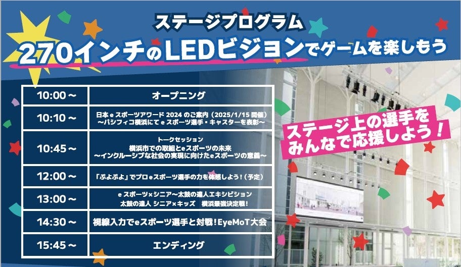 本イベントのテーマは「世代を超えて楽しめるeスポーツイベント」です。横浜市役所アトリウムを