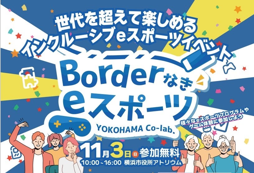 2024年11月3日(日・祝)に、世代を超えて楽しめるインクルーシブeスポーツイベント「“Borderなきeスポーツ”インクルーシブeスポーツ大会」を横浜市役所アトリウムで開催します。