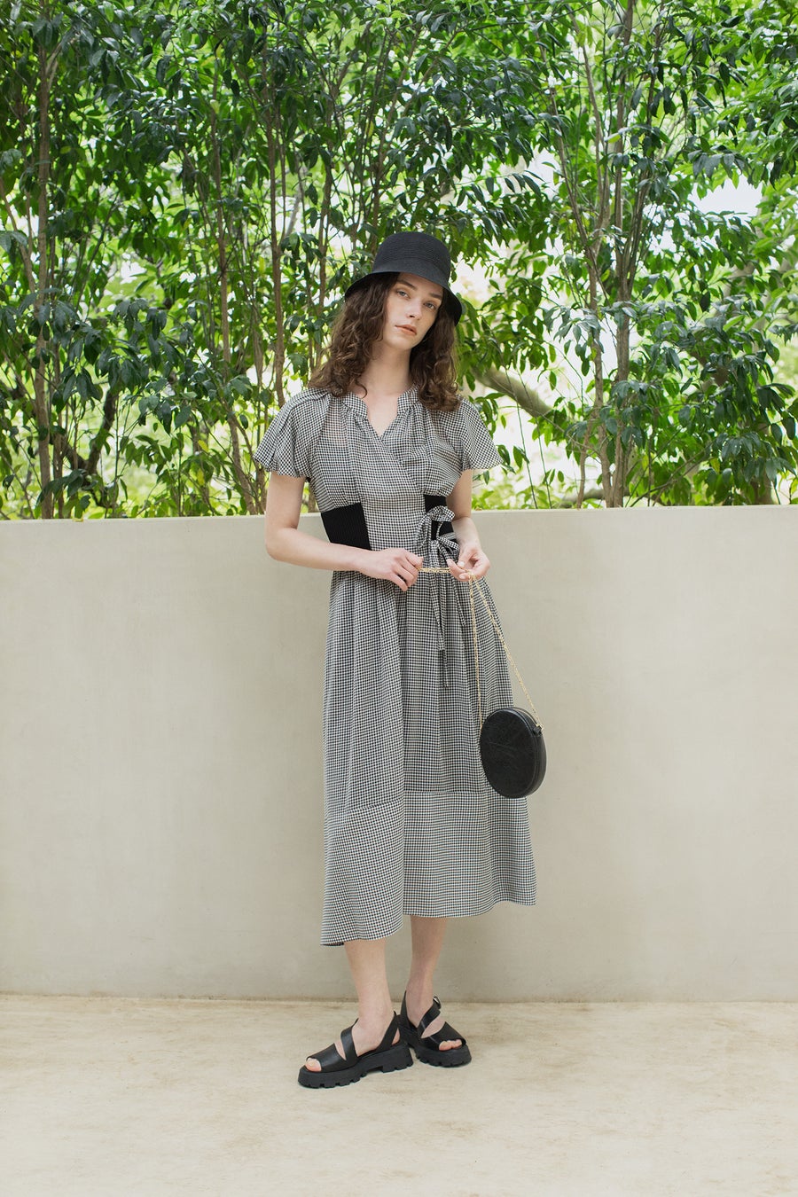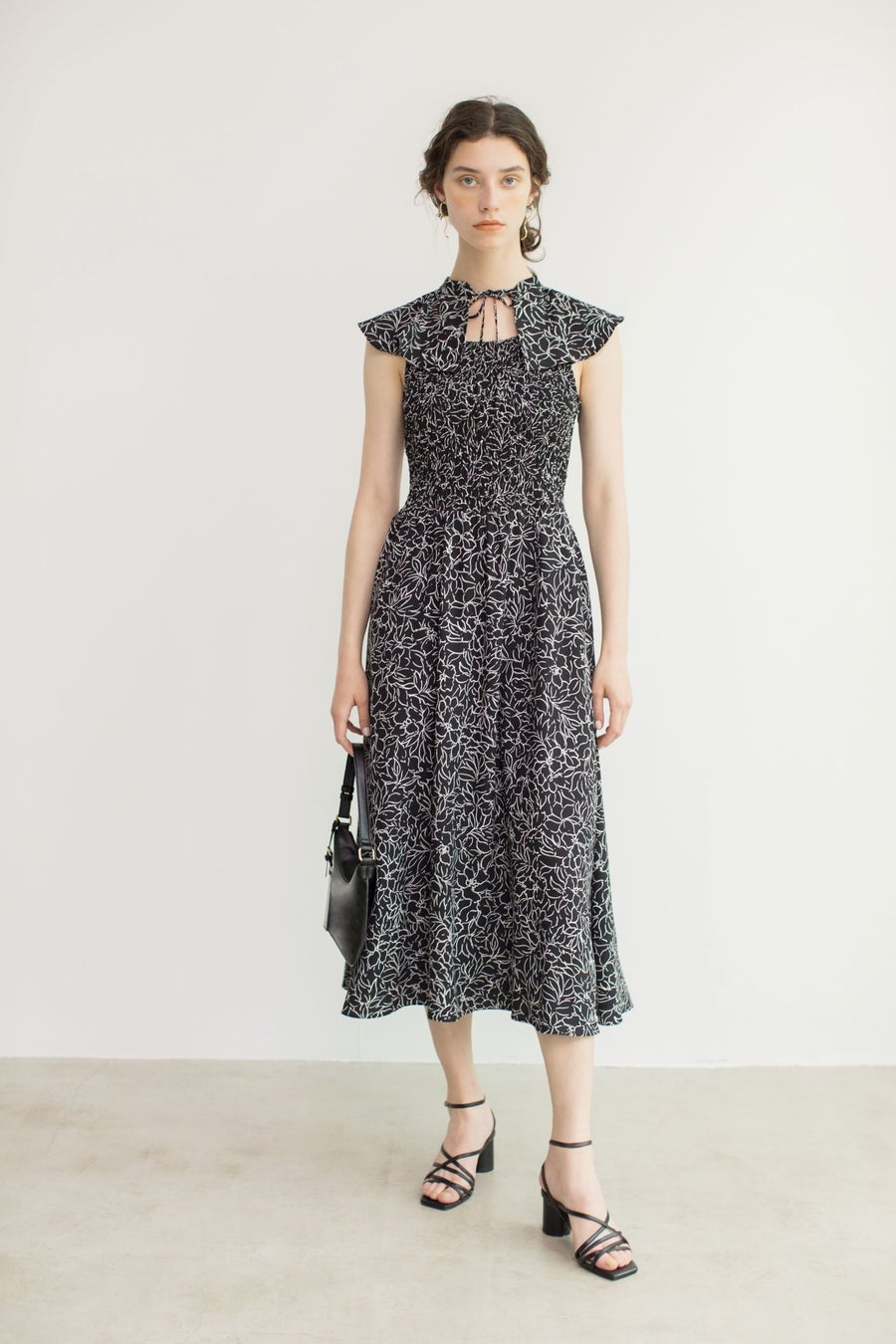 軽やかなシフォンにボタニカル柄のオリジナルプリントをのせた、夏に着たくなる爽やかなワンピース。