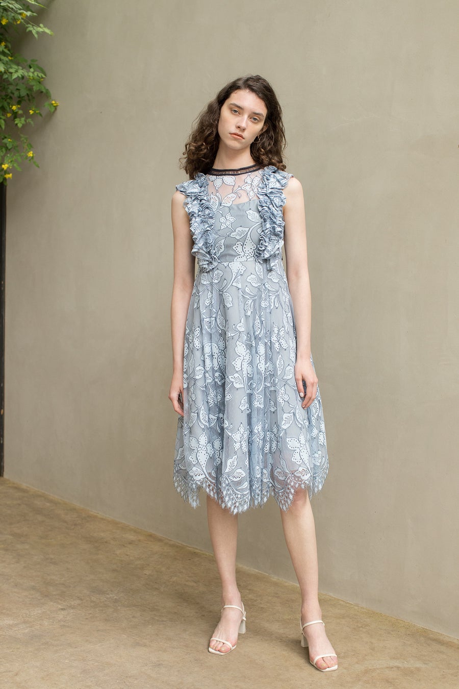 ボタニカルな模様がデザインされた、繊細なレース素材のオケージョンワンピースが登場。