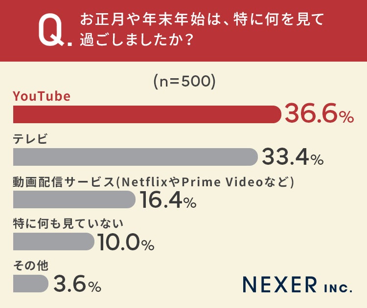 【YouTube視聴者500人に調査】36.6%が、年末年始は「YouTubeを見て過ごした」 テレビを上回る結果に