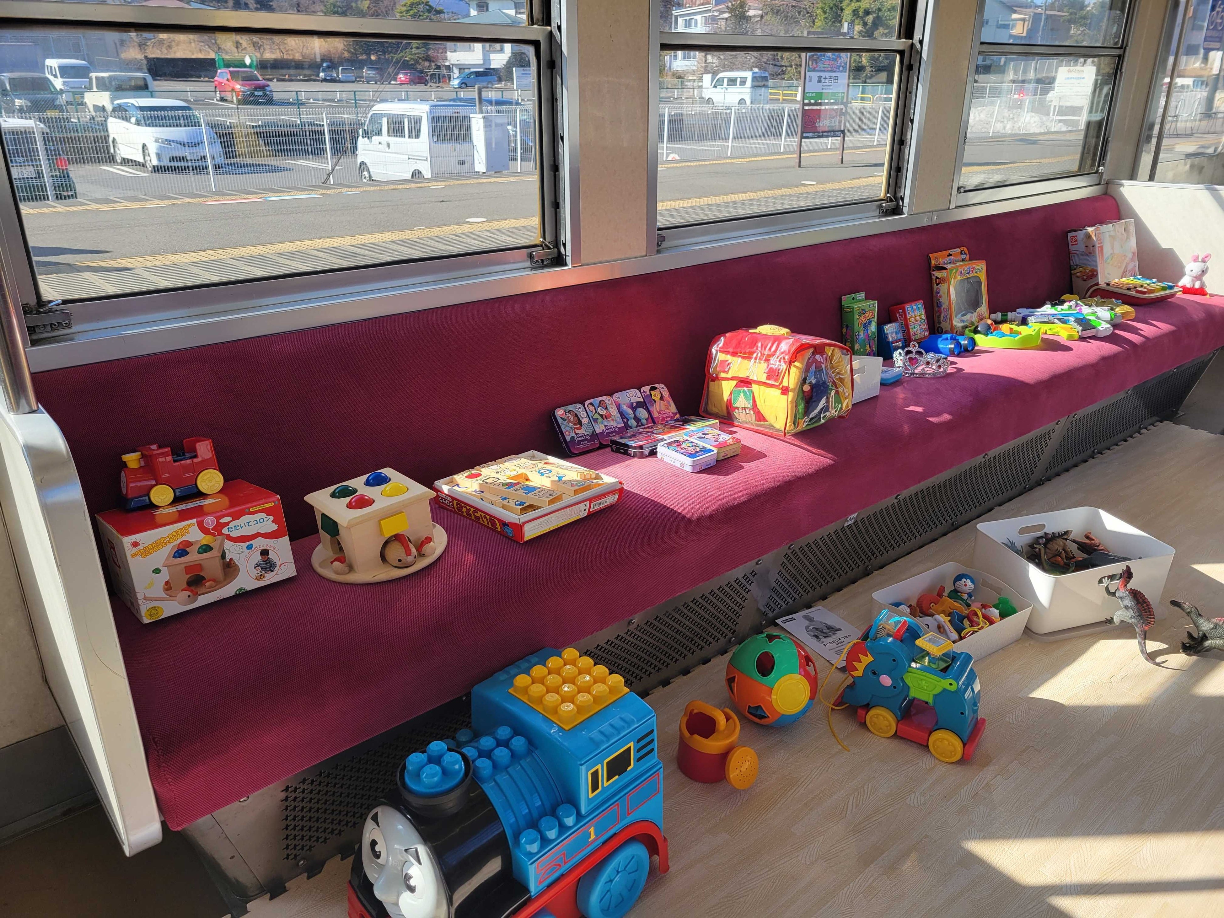 富士急グループの従業員やそのご家族からご寄付いただいた“遊ばなくなったおもちゃや絵本”を電車内に設置し、お子さまが自由に遊べるコーナーが登場いたします。なお、イベント終了後、おもちゃや絵本は希望するご家庭へ寄付を行う予定です。