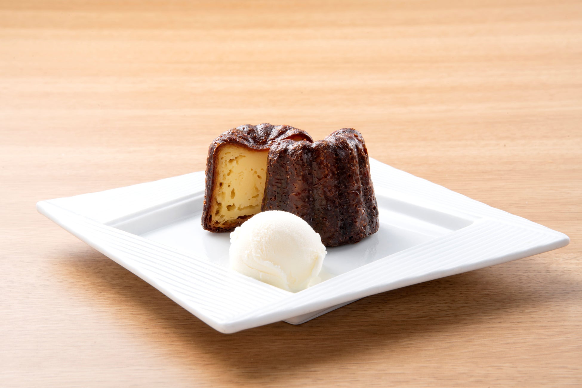 デザートには、グループ会社である有限会社ワタミファームのこだわり素材を活かした新作カヌレが登場。ワタミファーム「佐原農場(千葉県)」で栽培・収穫された有機栽培のサツマイモ「紅はるか」を練り込んだ生地に、北海道ワタミファーム美幌峠牧場の放牧牛から搾ったグラスフェッドミルク(※)を贅沢に使用しました。