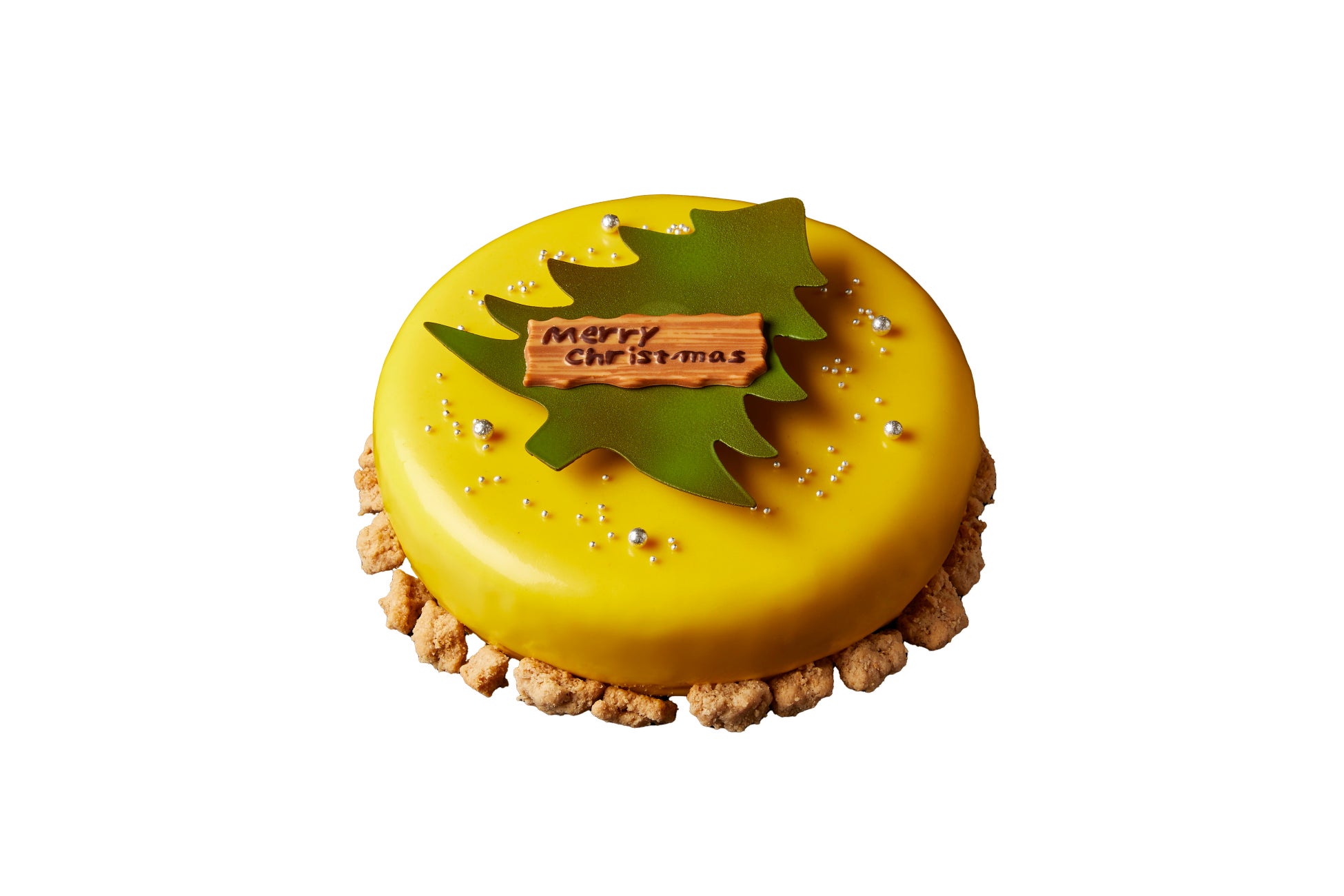 アプリコットが入ったアーモンドクリームとサクサクとしたココナッツ風味のダックワーズ、そしてシナモンが効いたスペキュロスビスキュイを、酸味のあるパッションフルーツクリームで包みました。さっぱりとした味わいが口いっぱいに広がるクリスマスケーキです。