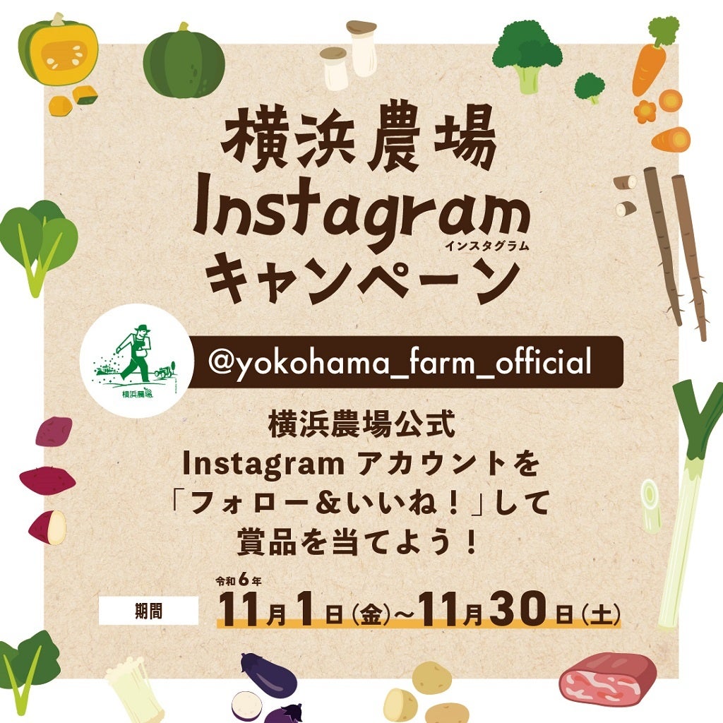 キャンペーン期間中に、横浜農場公式アカウント(@yokohama_farm_official)をフォローし、指定の投稿に「いいね!」をしてくださった方の中から、抽選で市内産農産物の詰め合わせをプレゼントします。
