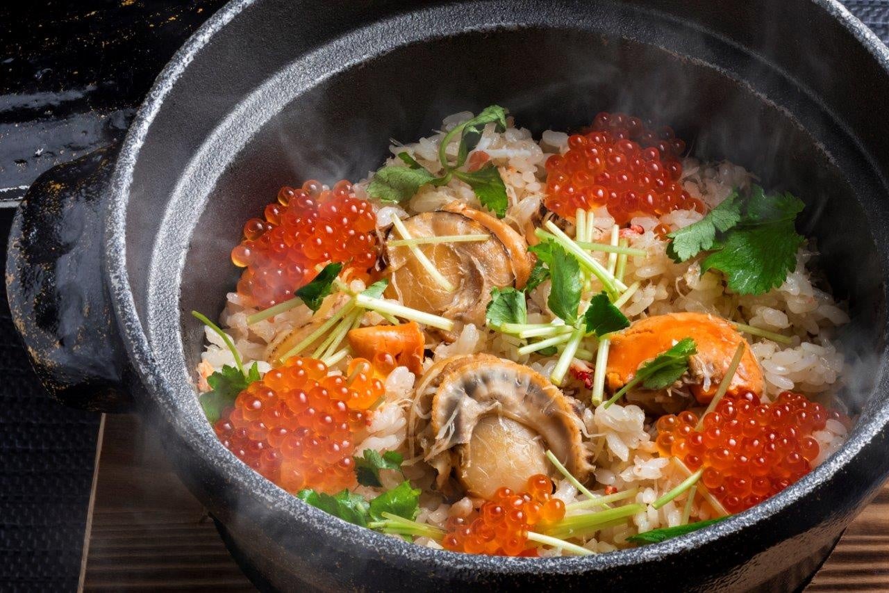 北海道の味覚の代表「ホタテ・蟹・いくら」を出汁香る釜飯で!贅沢な逸品をお楽しみください。