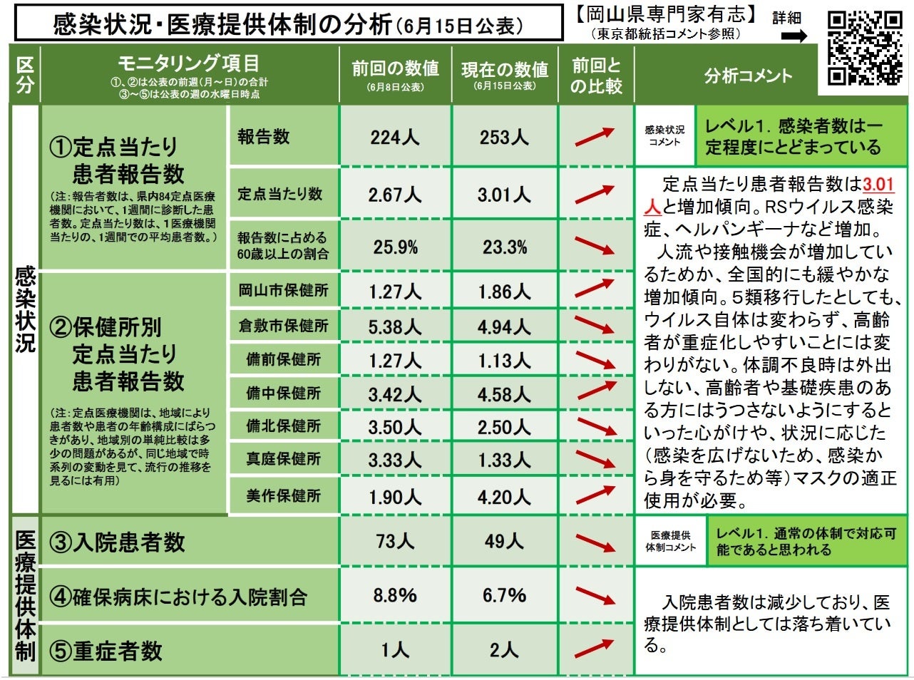 【岡山大学】岡山県内の感染状況・医療提供体制の分析について(2023年6月15日現在)