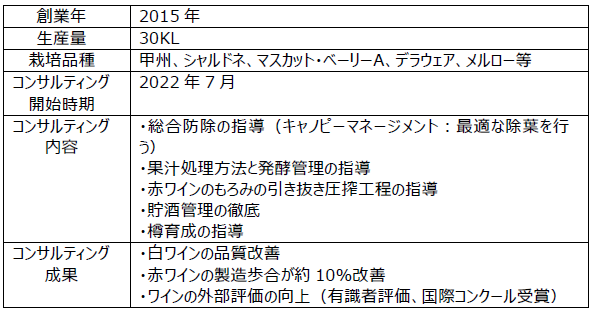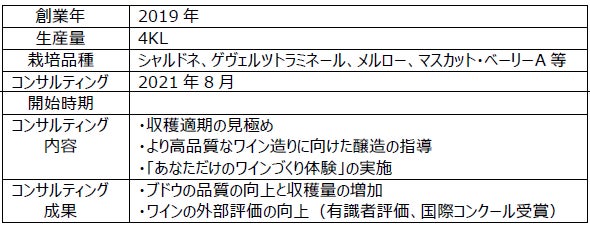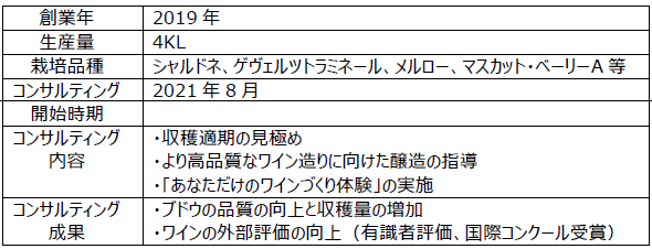 当社が今まで取り組んできた「コンサルティング事業」では、国内のスタートアップワイナリーを中心に、ワイン用のブドウ栽培やワイン醸造・生産に関する技術的なサポートといった、それぞれのワイナリーの課題に応じた適切な支援を行うことで、日本ワイン産業の発展に貢献してきました。