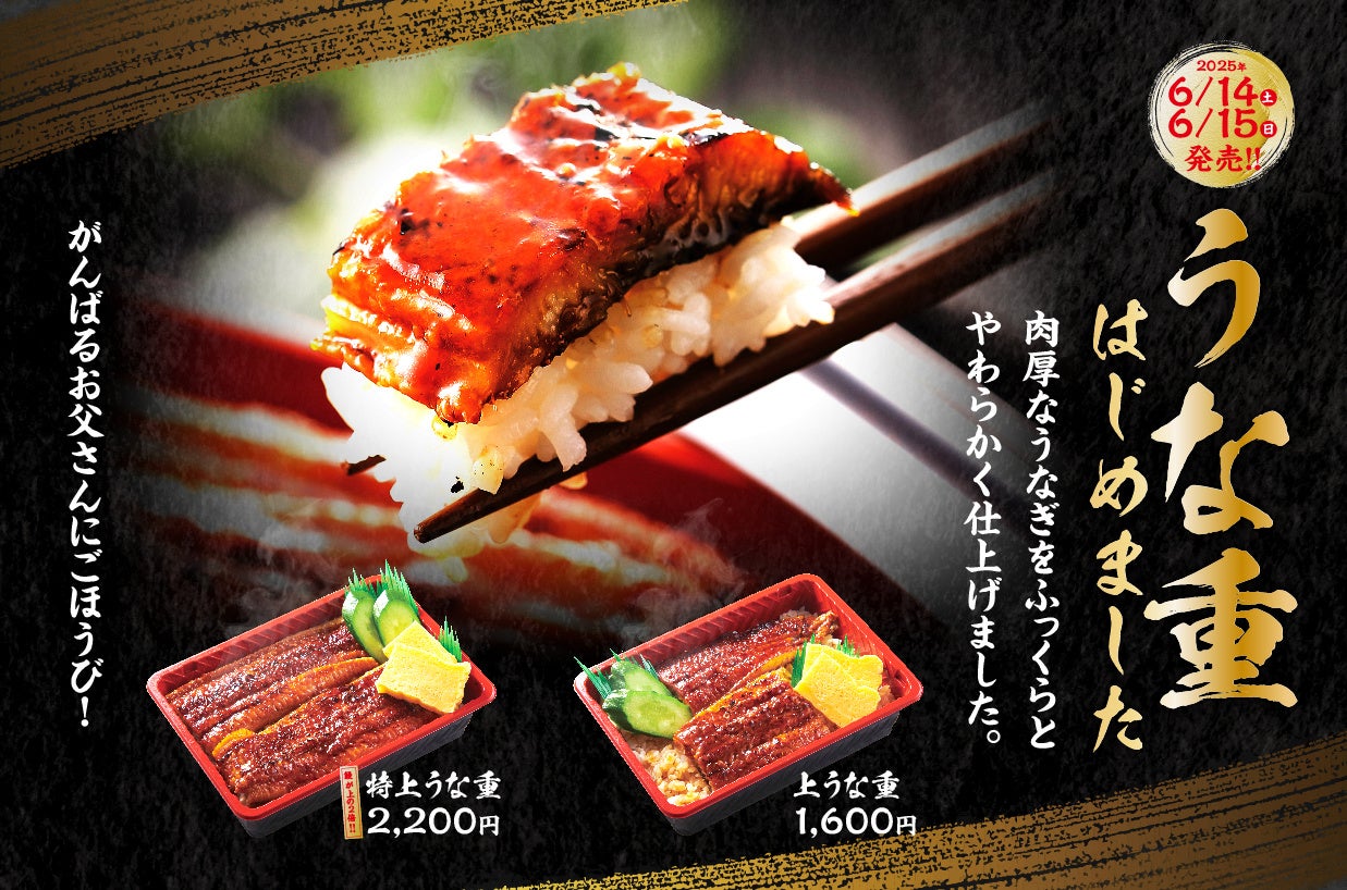 ワタミ株式会社(本社:東京都大田区)が展開する「握り寿司お持ち帰り 銀政」では、父の日の特別企画として、寿司屋がご用意する「上うな重1,800円(税込)」と「特上うな重2,200円(税込)」の2商品を6月14日(土)、15日(日)の2日間限定で販売いたします。