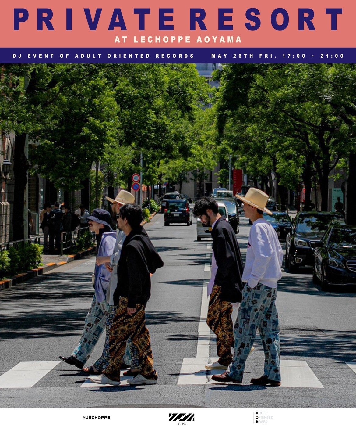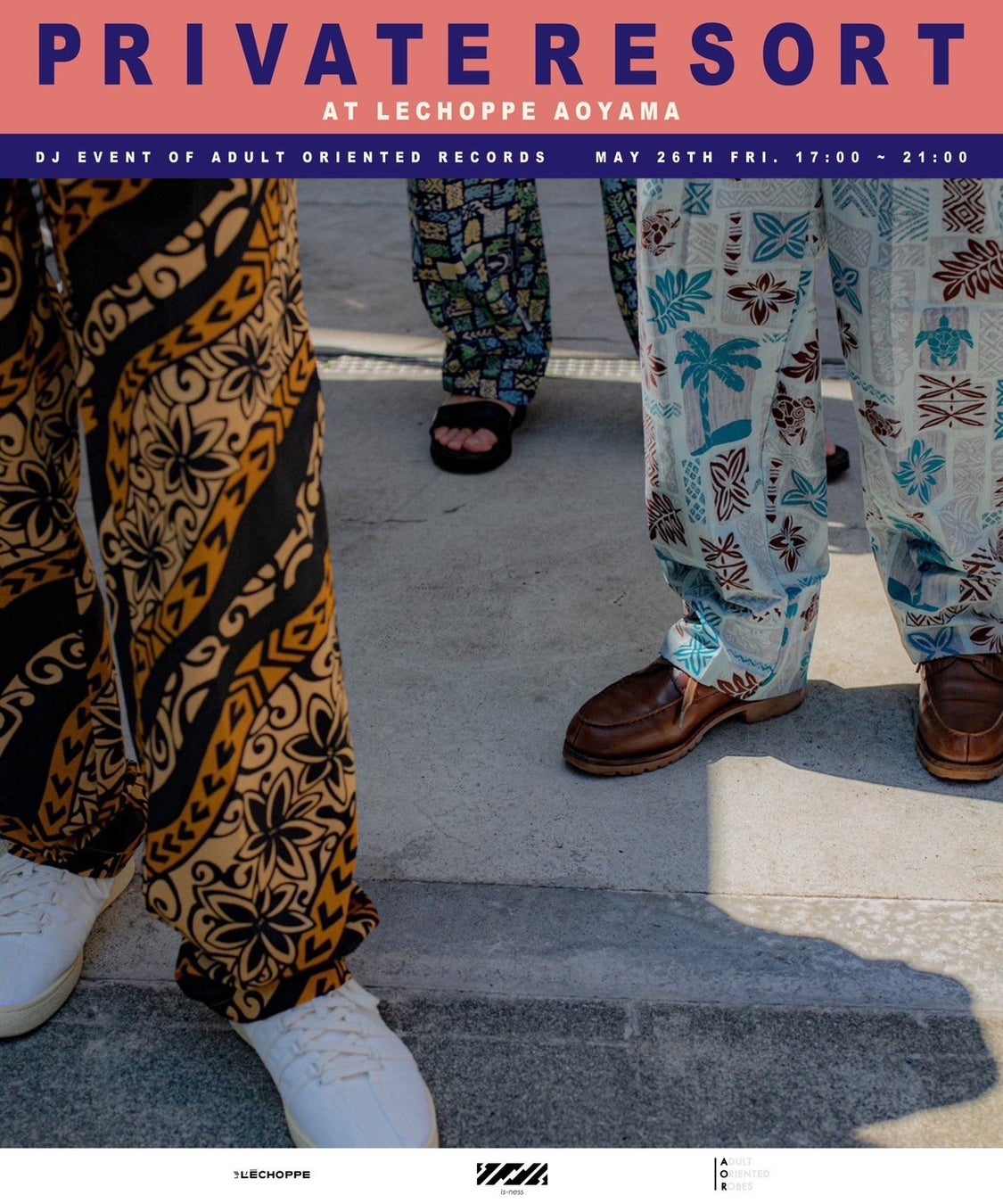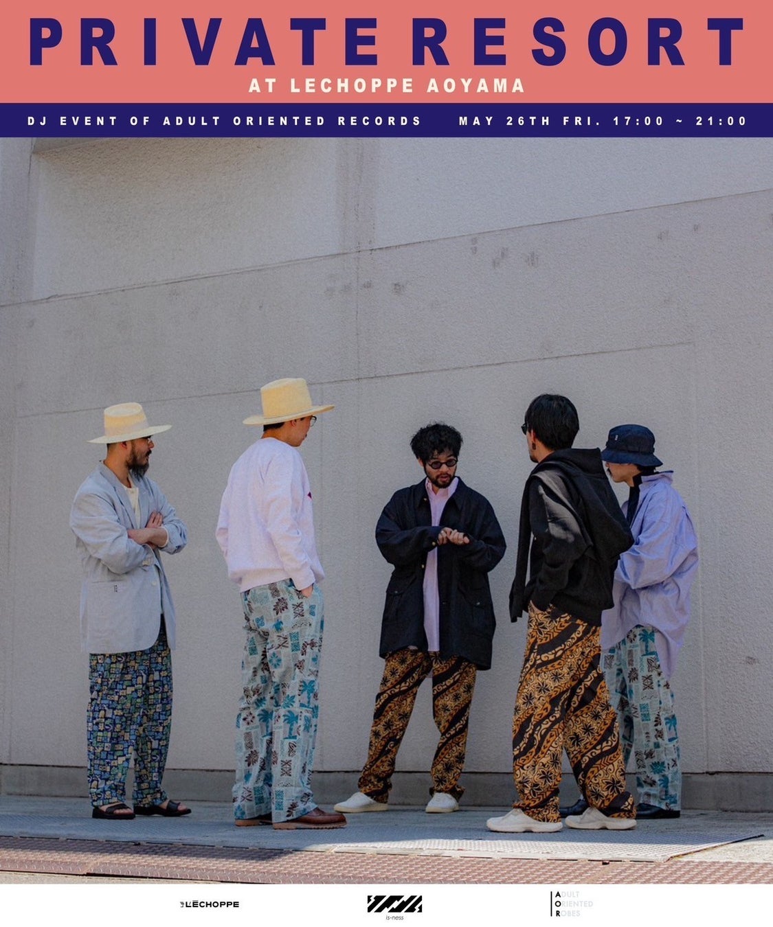 ADULT ORIENTED ROBES(AOR)、is-ness、そしてL`ECHOPPE。三者が交わる音楽とファッションのイベント【 PRIVATE RESORT 】を開催します。