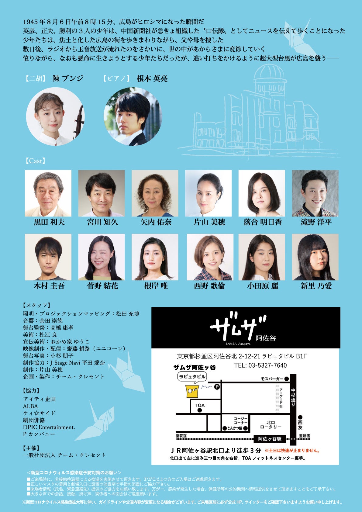 原爆による人災と台風による天災、二度にわたる惨禍の中を生きる広島の少年たち チーム・クレセント『少年口伝隊一九四五』(作・井上ひさし)上演決定 カンフェティでチケット発売