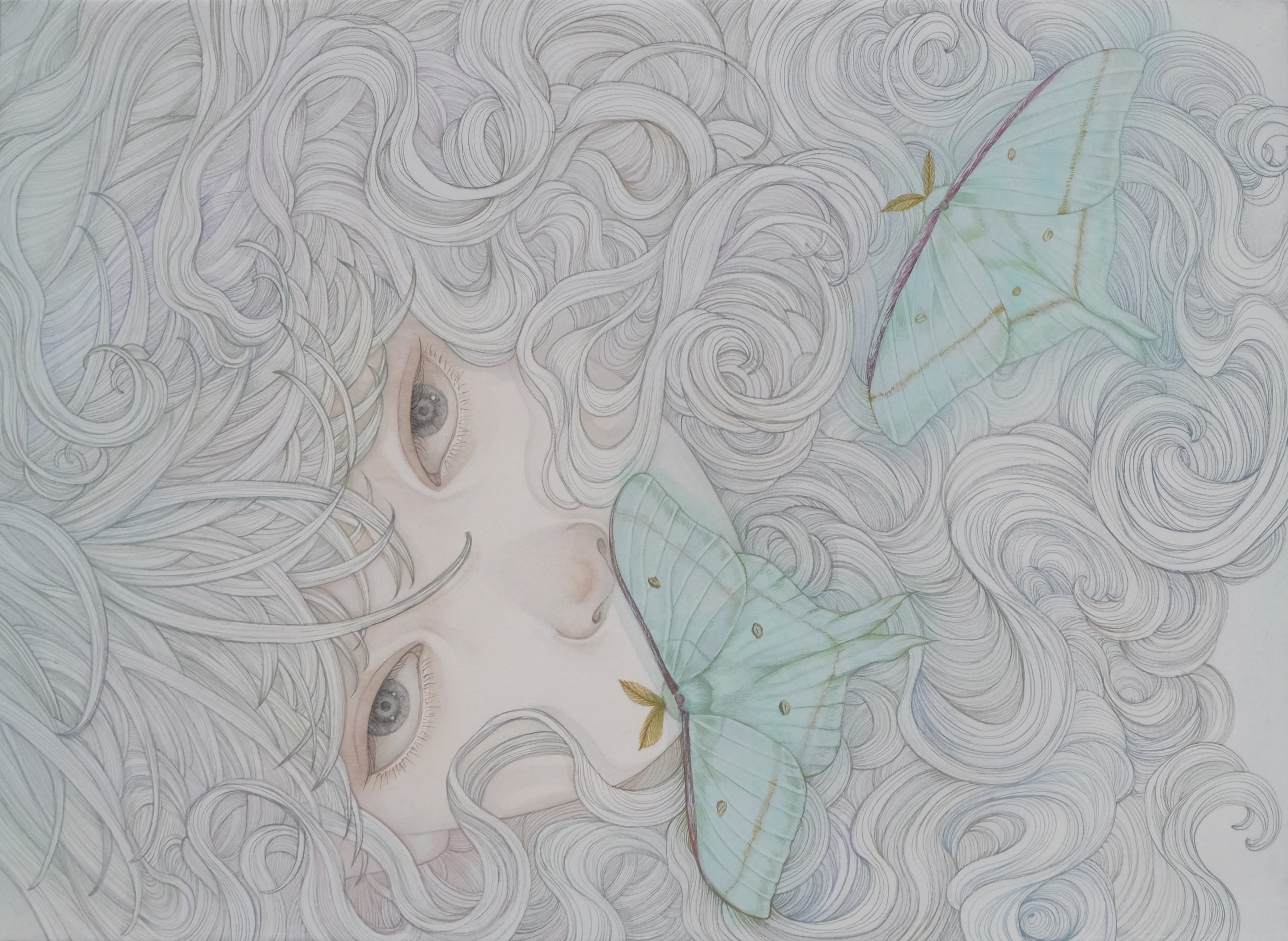 共に愛知芸大日本画出身の若手作家。ここ数年の美人画ブームを少女の内面を表現する独自の世界観で牽引してきた佐久間友香、若手ながら古典的な表現とモチーフを現代に蘇らせ注目されている玉井伸弥の初の二人展。
