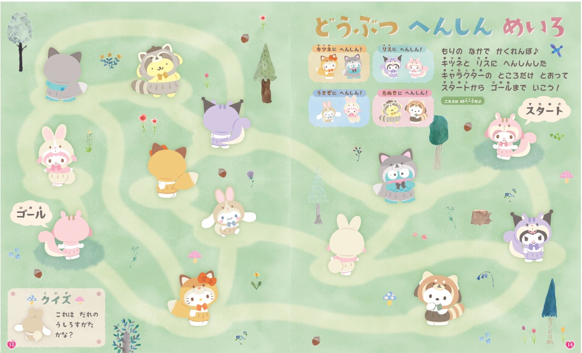本誌は、シール遊びや、ぬりえ、さがしえ、めいろ、ドリル、おはなし、クイズ、まちがいさがしなどをつかって、サンリオキャラクターズとたのしくあそびながら⼦どもの考える⼒を育てます。