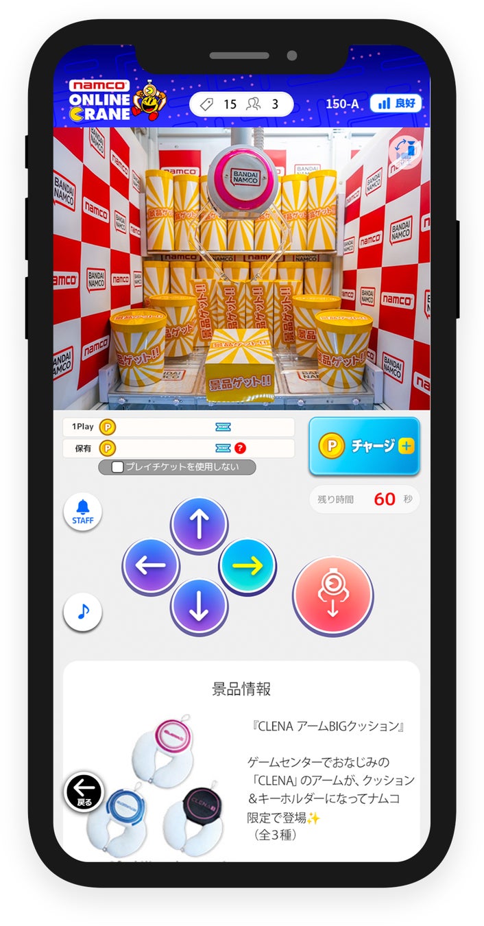 本物のクレーンゲームをスマホやPCでプレイし獲得された景品をご自宅へお届けします。