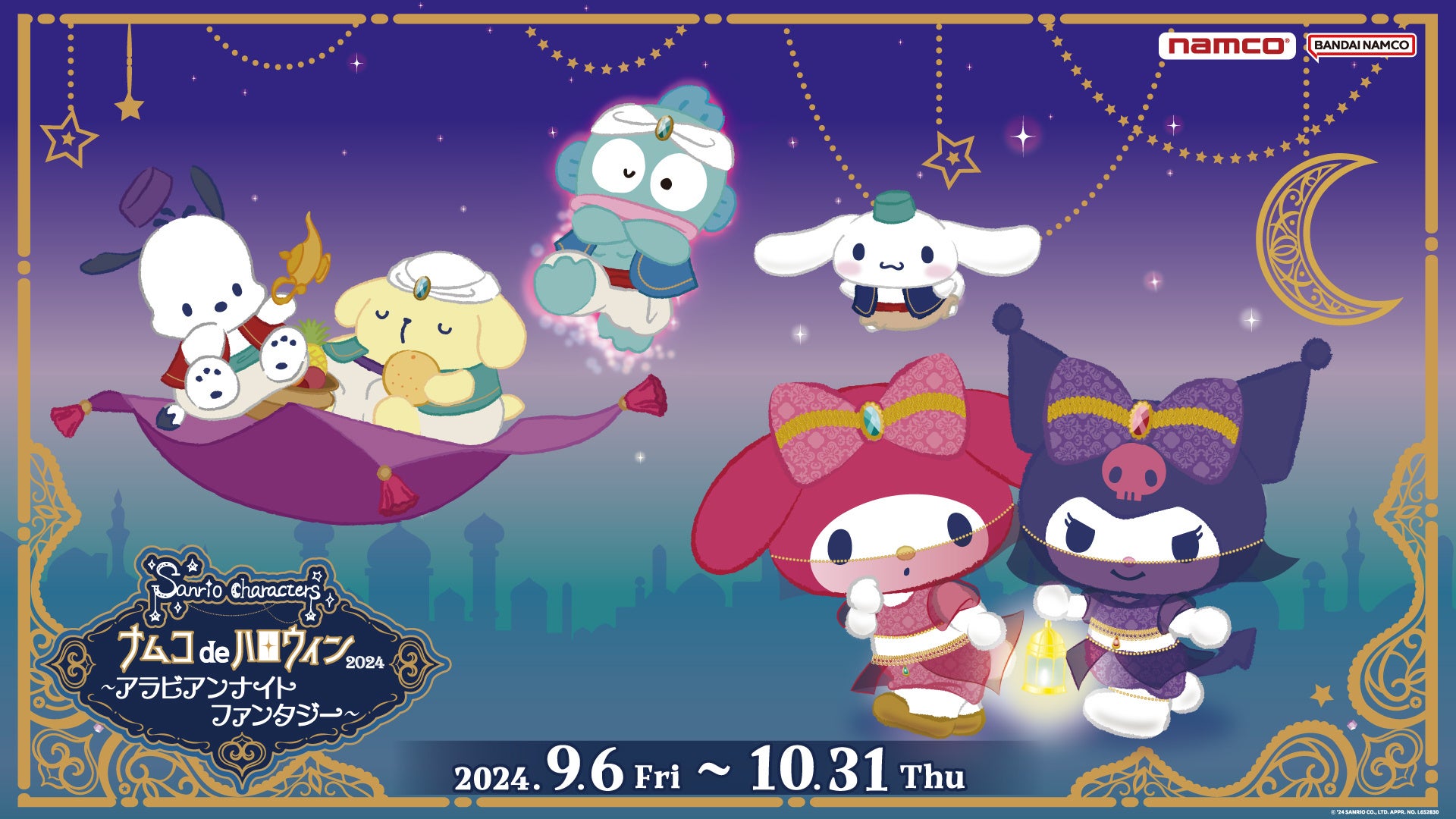 株式会社バンダイナムコアミューズメントは、株式会社サンリオのキャラクター景品がナムコ限定で登場するキャンペーン『ナムコdeハロウィン2024 ~アラビアンナイト ファンタジー~』を、2024年9月6日(金)から10月31日(木)まで、全国約200店舗の直営アミューズメント施設「ナムコ」および「ナムコオンラインクレーン」(以下ナムクレ)で開催します。