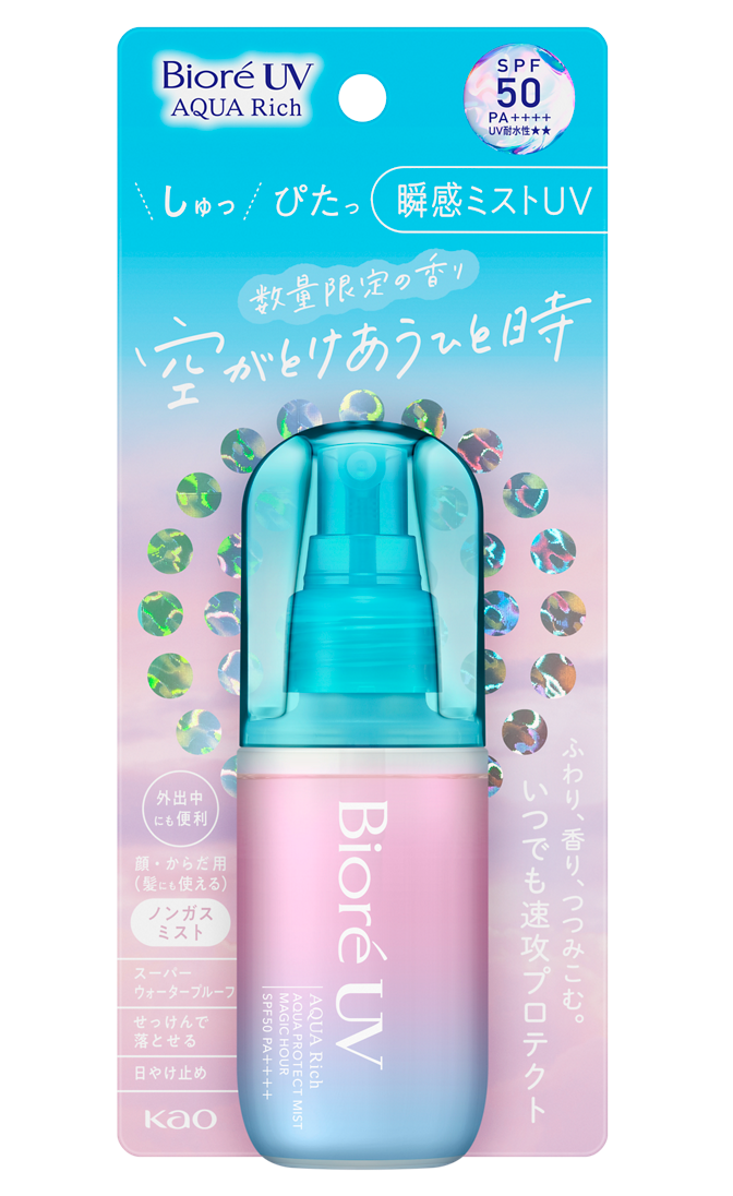 外出先での塗り直し習慣を促進 「ポータブル発想」の日やけ止め『ビオレUV アクアリッチ アクアプロテクトミスト』から「空がとけあうひと時」をイメージした香り 数量限定発売