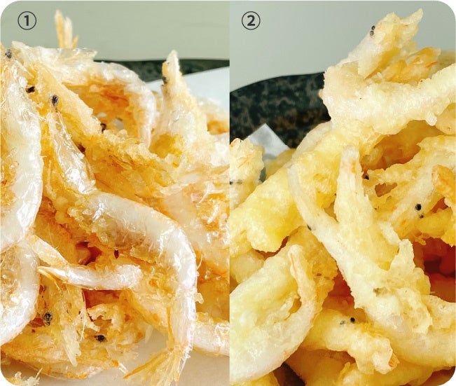 ①白えび唐揚げ(1人前)1,301円 ②白えび天ぷら(1人前)1,301円