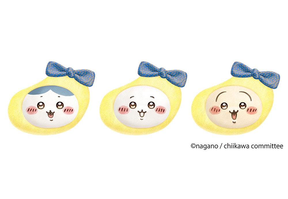 お菓子の個包装にはリボンのついた東京ばな奈のかぶりものをしたちいかわたちをデザイン。「ちいかわ」「ハチワレ」「うさぎ」の何が出るかは開けてみてのお楽しみです♪