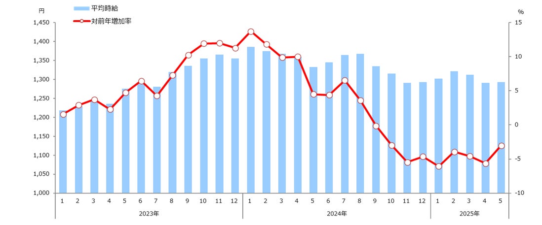 2025年5月度 アルバイト平均時給調査 全国の平均時給は1,293円