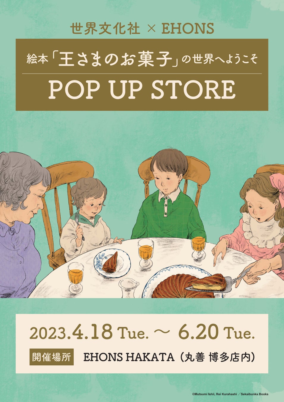 2023年4月18日(火)~6月20日(木)まで、福岡・丸善博多店内 EHONS HAKATAにて絵本『王さまのお菓子』(文/石井睦美 絵/くらはしれい)のPOP UP STOREを開催します。EHONSオリジナルグッズや、くらはしれい直筆サイン入り複製原画を販売、絵本の世界を楽しめるイベントになっています。