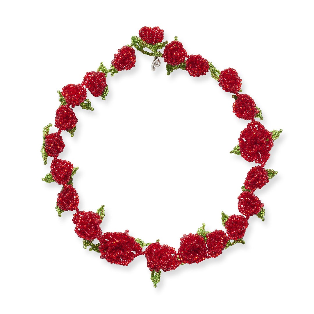 グアテマラの女性職人によるハンドメイドで、マヤの伝統への情熱から2019年に誕生したコペンハーゲンを拠点とするジュエリー&アクセサリーブランド、Pura Utz のアイテム。高品質のガラスビーズで咲き誇る薔薇を表現しています。