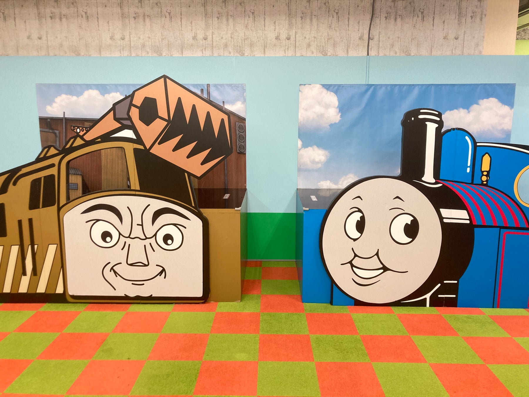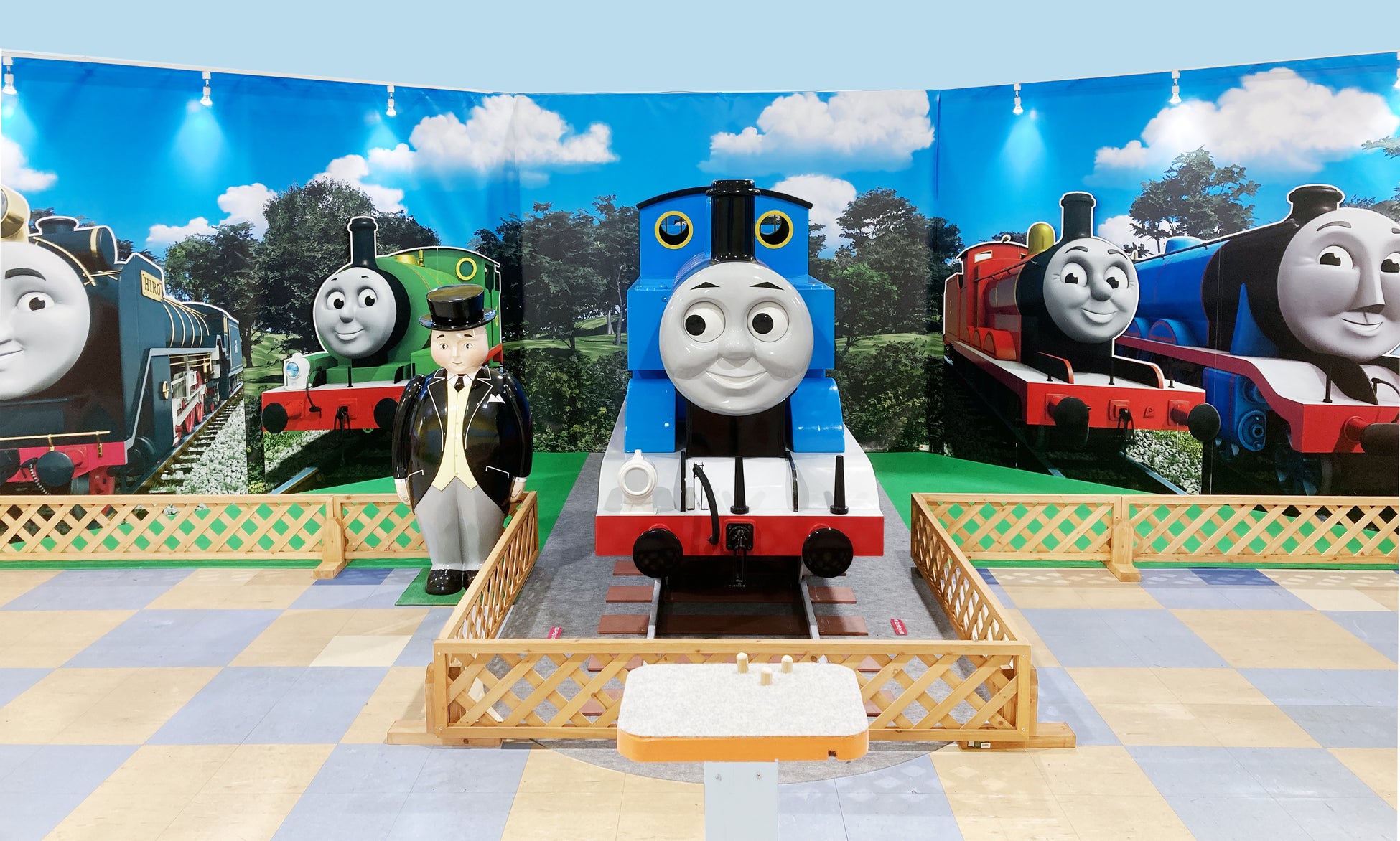 トーマスがお出迎えします。写真撮影に人気のスポットで、イベントへの期待が高まります。