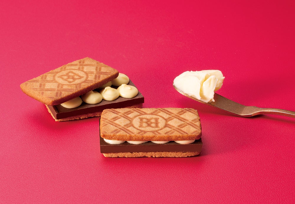 ふっくらしぼったバターホイップショコラに、アーモンドプラリネ香る厚切りショコラ。バレンタインシーズンにふさわしく、サクサクのバターサブレでボリュームいっぱいにサンドしました。バタースイーツ専門店だからこそ生まれた“バター×ショコラ”の発想で、口いっぱいに美味しさをお届けします。