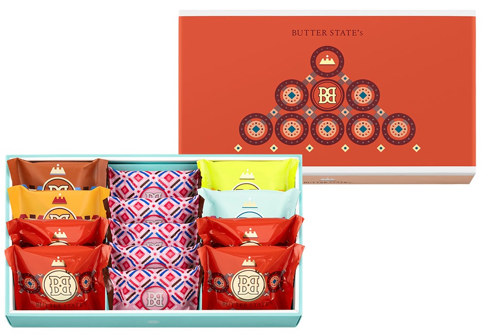 【内 容】バターステイツクッキー(THEバターリッチ・ピスタチオバター・ショコラバター・メープルバター)各1個、バターホイップショコラサンド 5個、バターステイツ THEフォンデュショコラ 4個