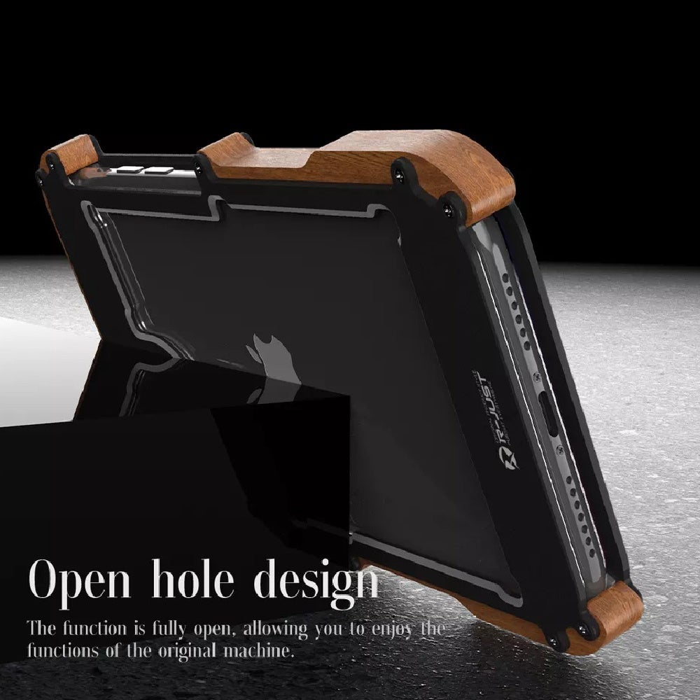 全体をカバーするケースを今までにお使いの方にも、メタルだけではなくアイアンウッド木の温もりを感じられるフレームなので、イメージを一新してスタイリッシュにお使いいただけます。