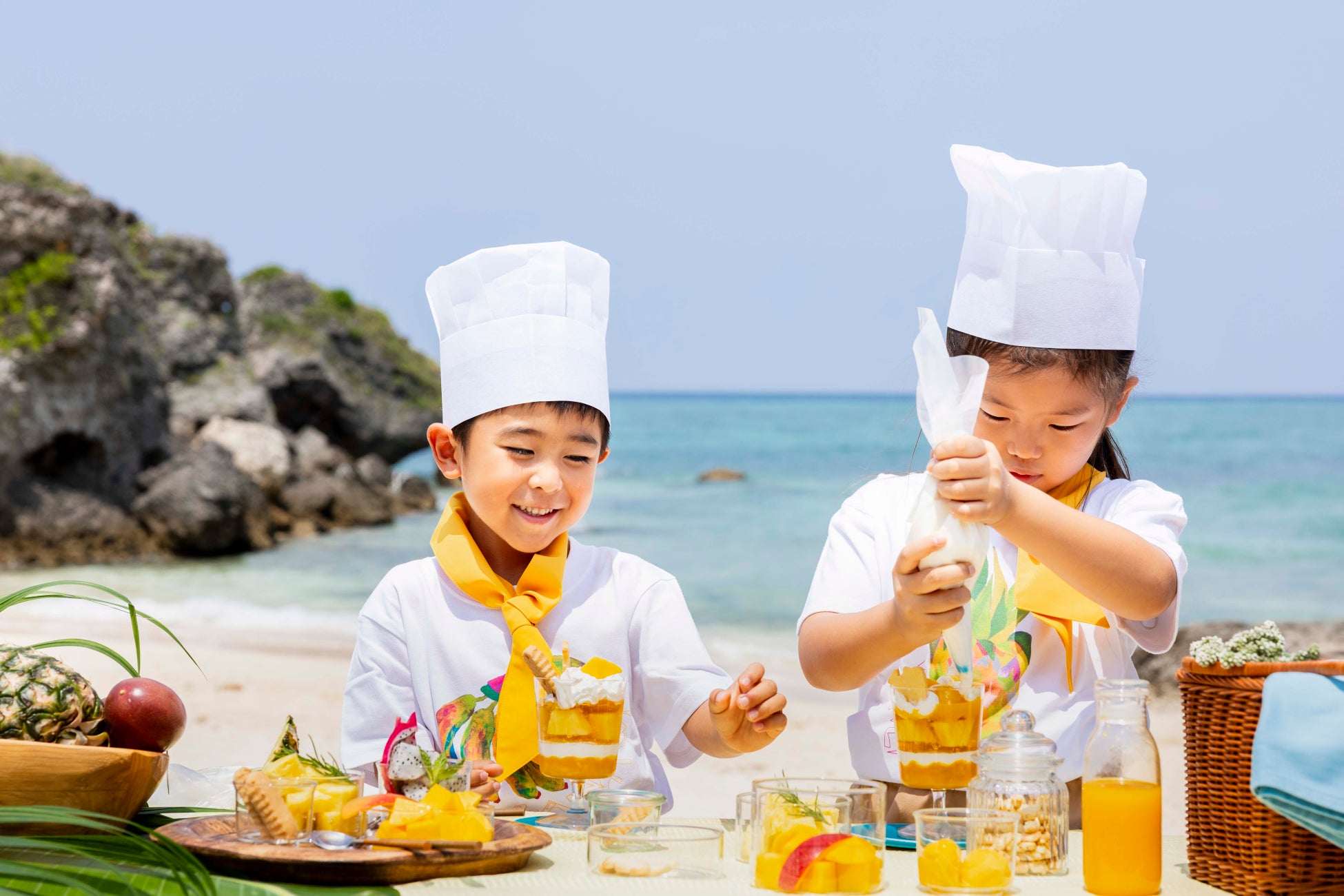 圧倒的な絶景とスケールを誇る海カフェ「バンタカフェ by 星野リゾート 」では、トロピカルフルーツを堪能する夏恒例のイベント「まーさんトロピカルフェア」を2025年6⽉1⽇から開催しています。夏休みがスタートした7月25日からは、パティシエ気分が楽しめる「まーさん!パティシエバスケット」と色鮮やかな絵の具で描く「夏休み!トロピカルお絵描き」のキッズプログラムが新たに登場します。「まーさん」とは、沖縄の⾔葉で「美味しい」という意味。夏の沖縄で美しい海を眺めながら、まーさん!なトロピカルフルーツを味わう、家族で過ごすとっておきの思い出が作れます。
