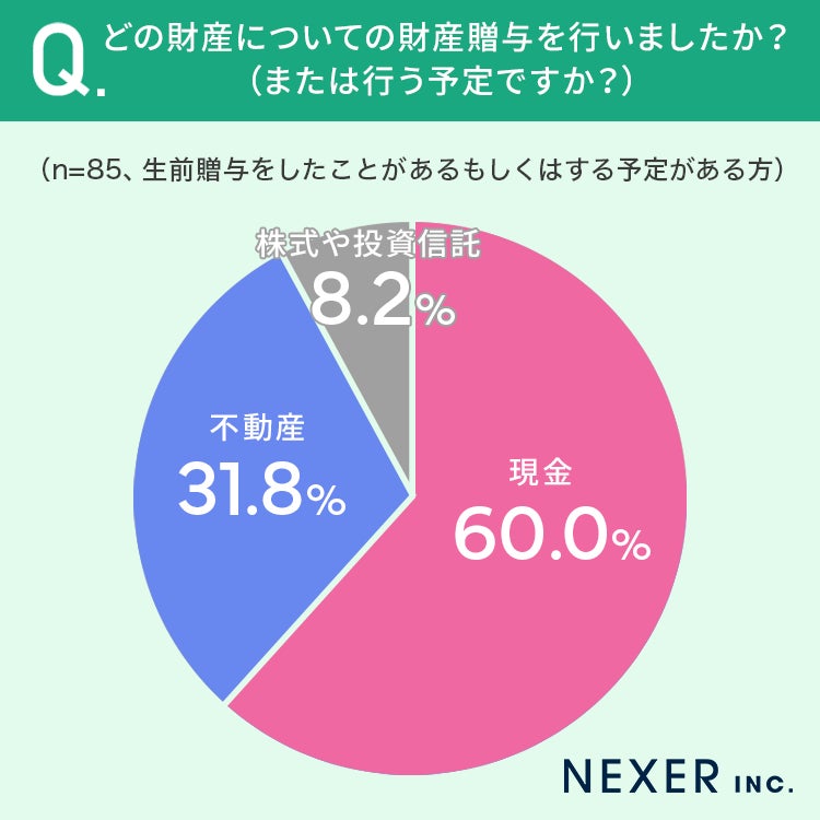 また、どの財産についての財産贈与を行ったか(行う予定か)聞いてみました。