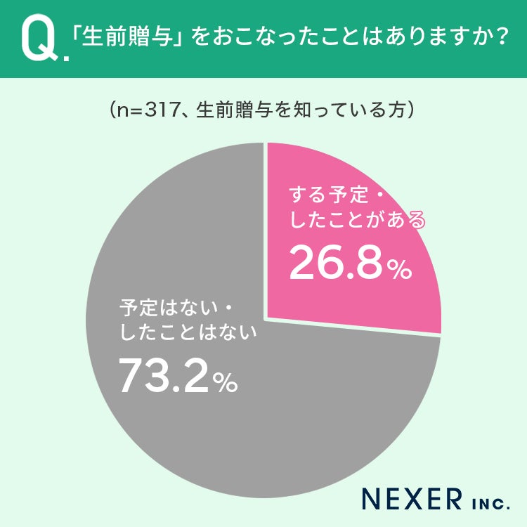 26.8%と3割近くの方が、生前贈与を「する予定・したことがある」と回答しています。