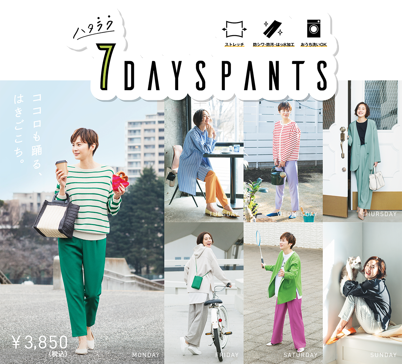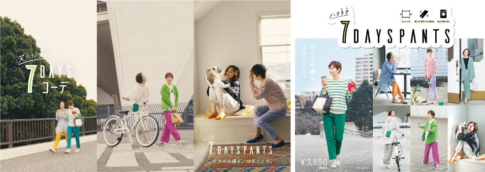 大人気のハタラク7DAYSパンツを着こなし、新しい季節に「あたらしい、笑顔」溢れる1週間コーデを公開