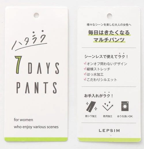 「ハタラク」という意味は「機能的で働く」と「シーンレスで使えて楽」、「お手入れが楽」を掛け合わせました。また、1週間毎日でも使いたくなるパンツという意味を込め「ハタラク7DAYSパンツ」というネーミングにしています。