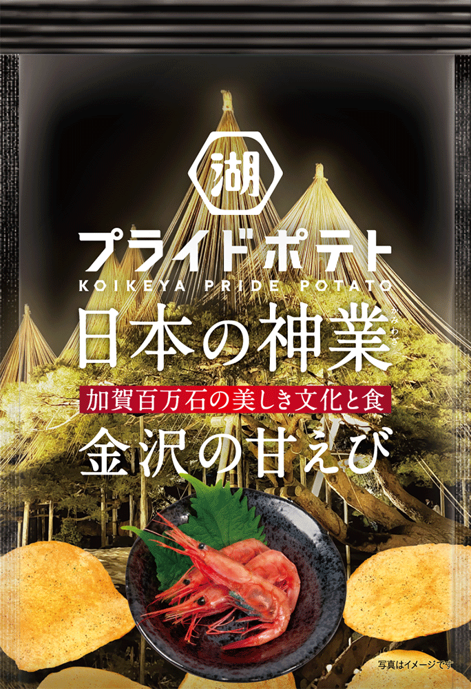 湖池屋は、日本のポテトチップスの老舗として、“日本産食材の魅力”を支える匠の技と情熱の結晶である“日本の神業”を中核とした「湖池屋プライドポテト 日本の神業」シリーズを推進し、全国へ発信することで、日本全体を盛り上げることに貢献したいと考えています。2025年11月発売予定の「湖池屋プライドポテト 日本の神業 金沢の甘えび」にぜひご期待ください。