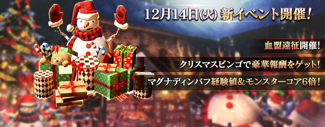 また、クリスマスをテーマにしたマグナディンのプレゼントボックスから、経験値獲得量とモンスターコア獲得率が6倍(+500%)になる強化効果イベントも開催いたします。