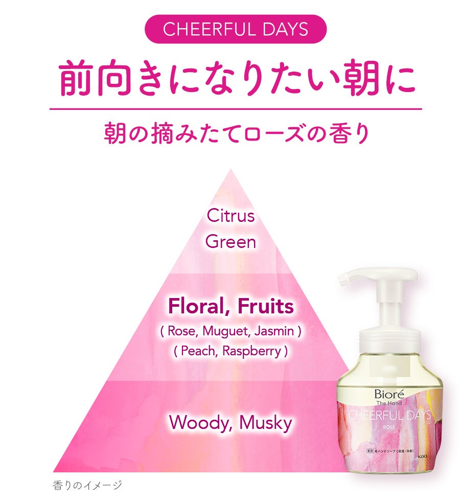 今回、「暮らしや気分を上向きにするものを日々の生活の中に取り入れたい」という意識に注目。手洗いもそんな毎日の暮らしや気分を上向きにする時間になって欲しいという想いから、泡と香りでの心地いい手洗いを追求し改良いたしました。