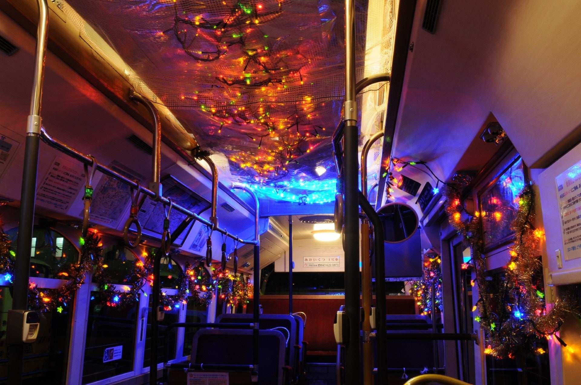 営業所を身近に感じていただくために、横浜市立本牧南小学校 にご協力 を いただき 、 あかいくつの車両に クリスマスイルミネーションの装飾をしていただきます。装飾した バスは 、 令和6年12 月 25 日 (水) まで、 通常のあかいくつとして運行します。