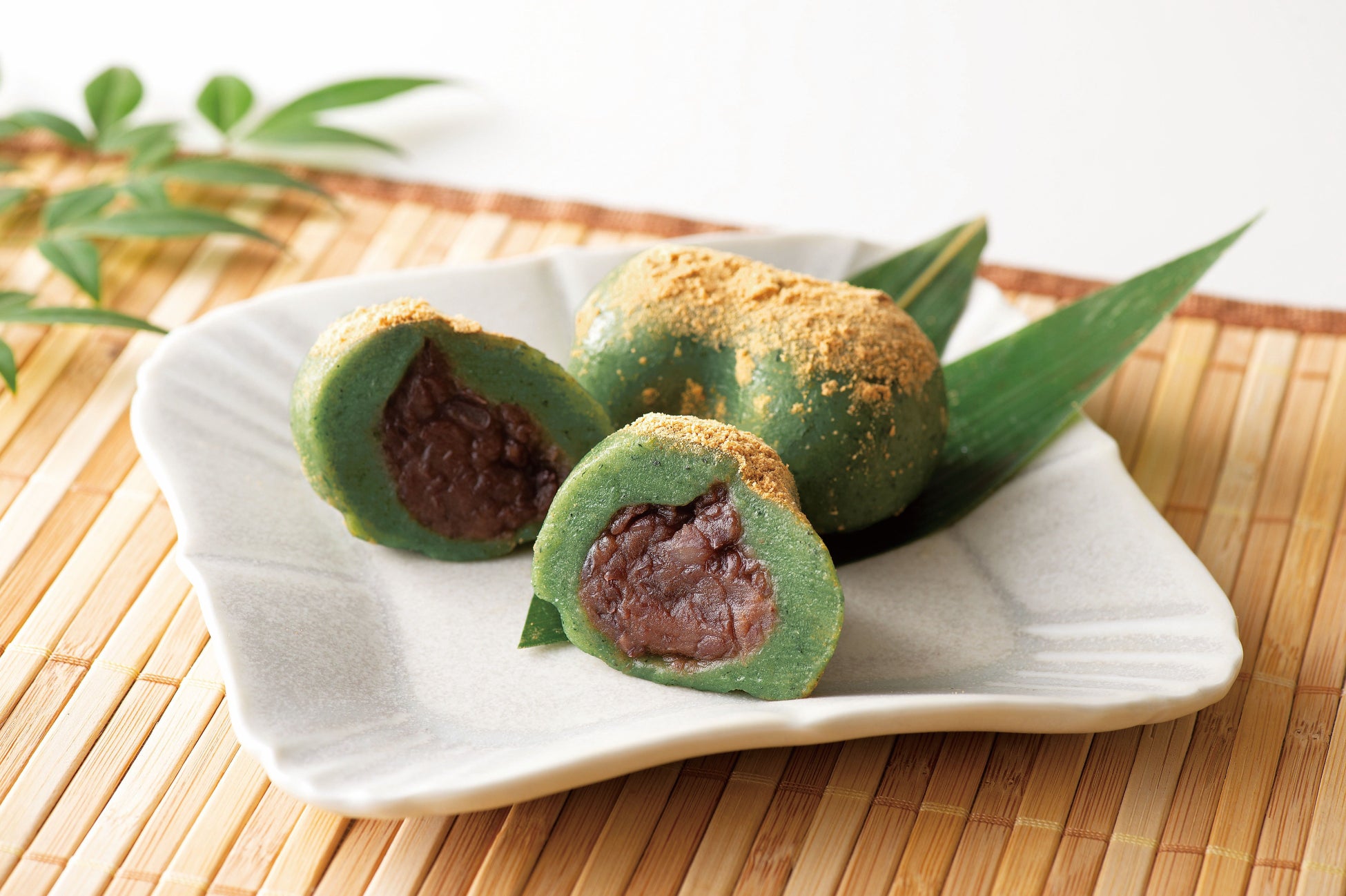 よもぎの風味、米粉の生地の食感、北海道産小豆の粒あんの甘みが絶妙です。