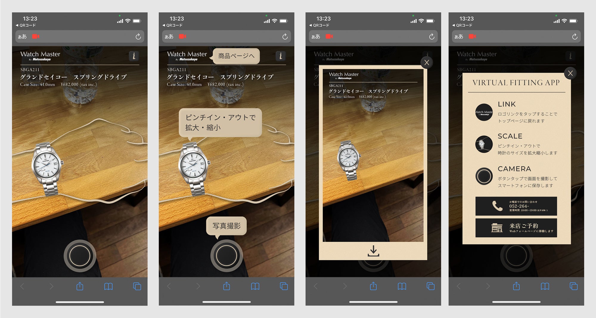 オウンドメディア<GENTA the Watch>掲載の約2000 種類の時計を、スマートフォンを使ってオンライン試着が出来る新たなサービスツールを導入します。試着イメージを掴むことで、顧客の来店動機を高めます。