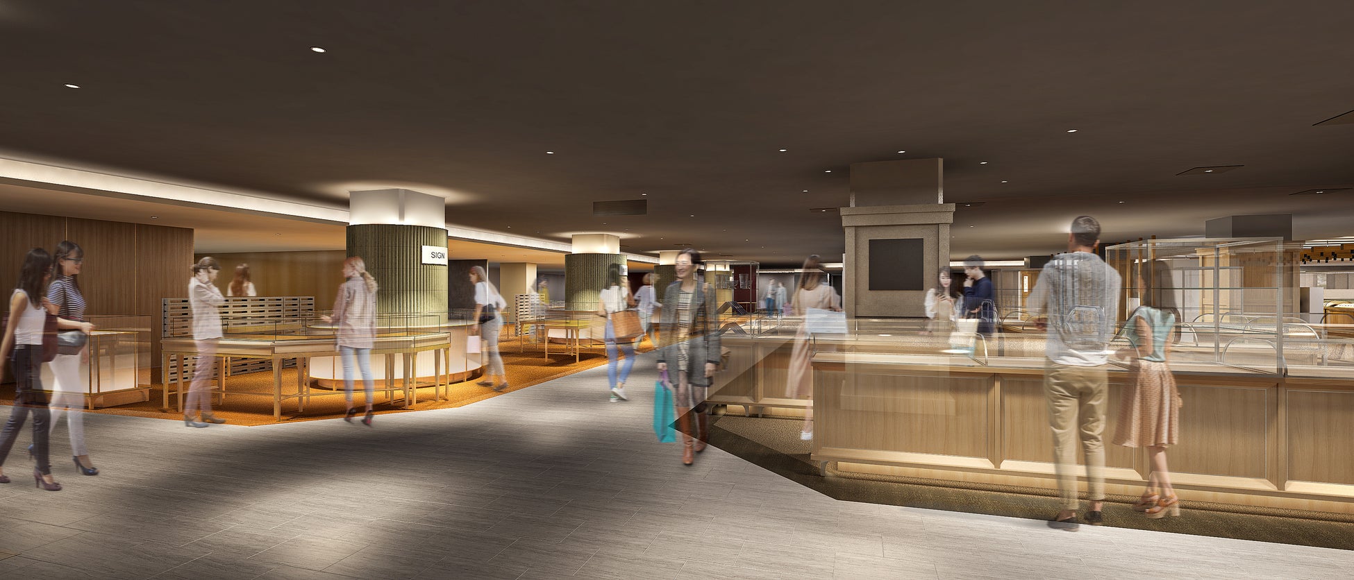 ・同フロアに展開する宝飾品を入口通路面へ移設し、女性客の来店を促進する区画へと再編します。