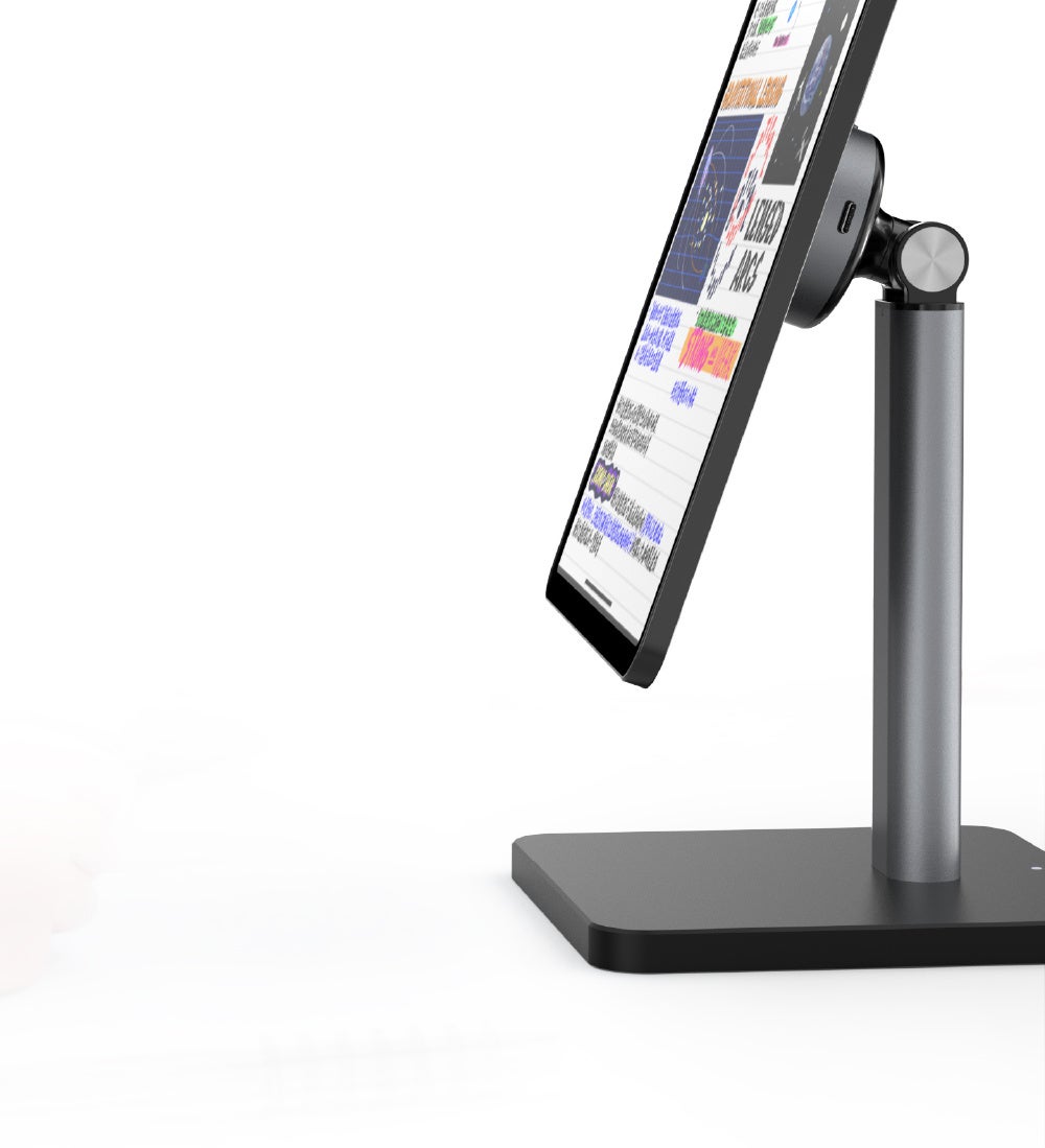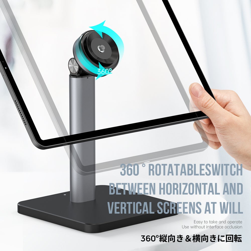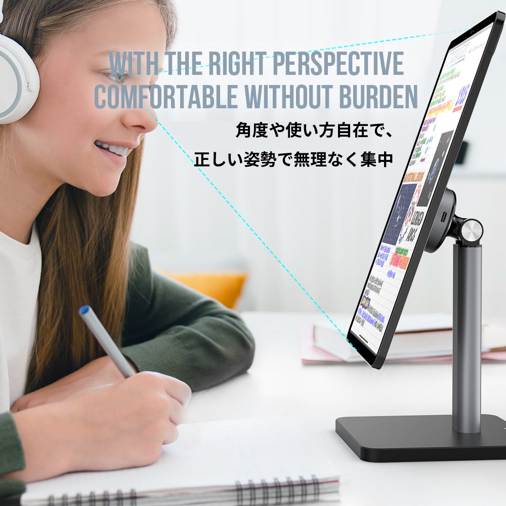 用途に合わせて360°、縦アングルから横アングルまで回転させたり、スタンドの角度も自在に変えられるため、ストレスフリーです。