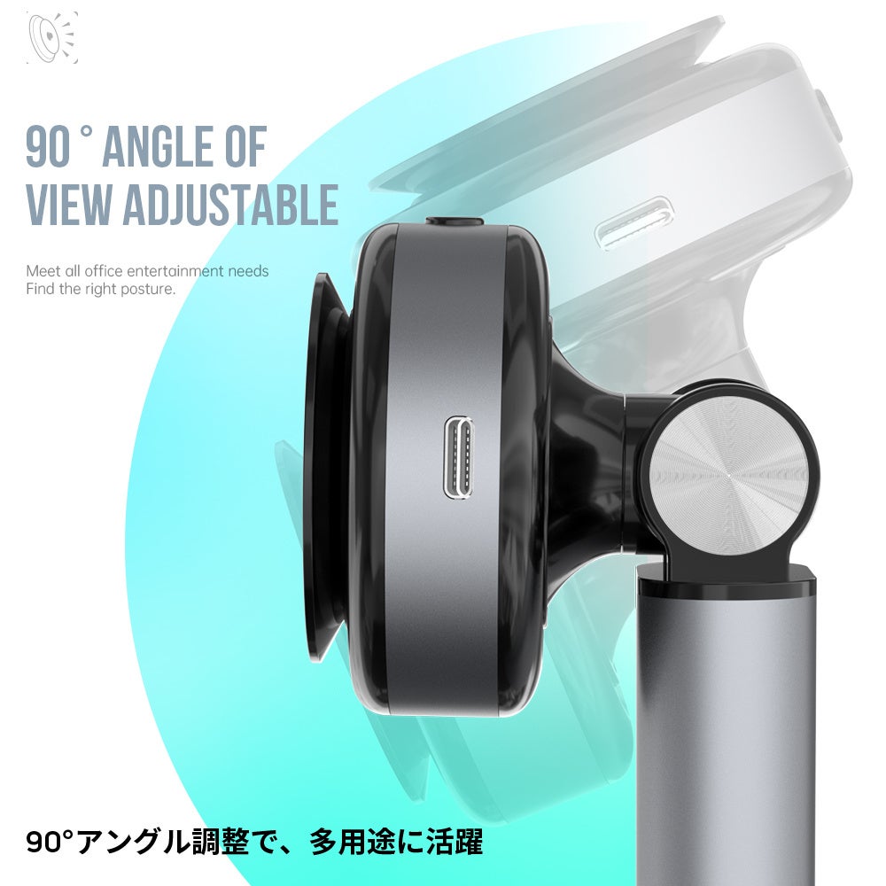 - 縦横アングル360°回転、スタンド角度も90°調節で、無理のない姿勢で用途に合わせて使える