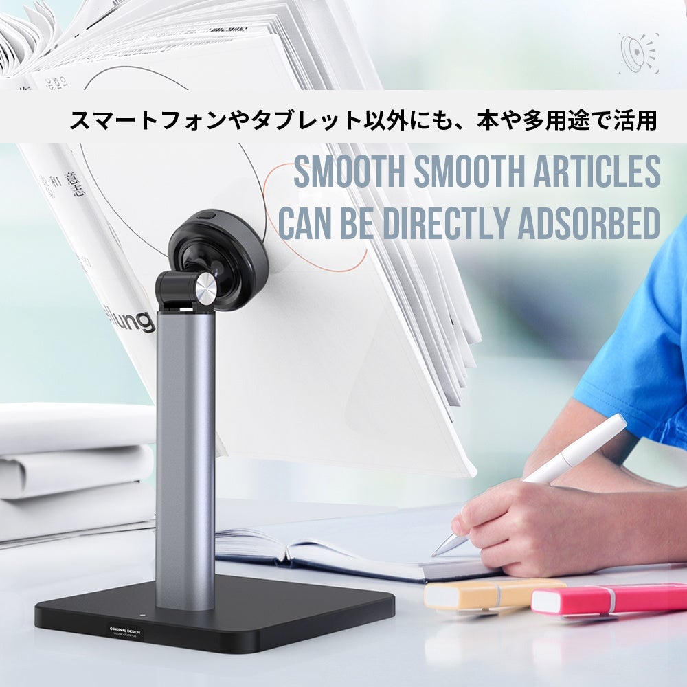 様々なサイズのスマートフォンやタブレットに対応した、真空吸着式のマルチスタンドです。