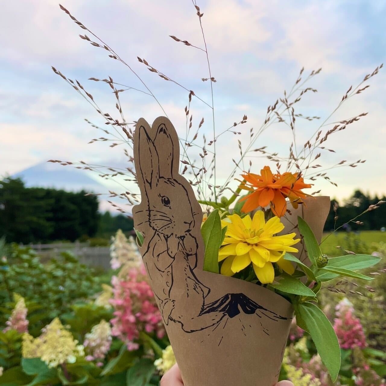 イングリッシュガーデンで生育中の、ぺニセタム、ワイルドオーツ、パニカム ウィルガツムといったグラス系の植物を中心に、切り花としてグラスブーケを11月26日(日)まで販売いたします。毎朝スタッフがガーデン内から摘み取った数種類の草花の中から、数種類好みのものを選び、ブーケにして持ち帰ることができます。「虹の花まつり」会期中は、花畑を彩るジニアも選ぶことができます。