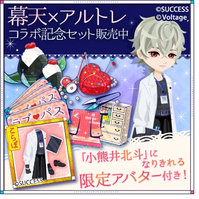 株式会社ボルテージ(本社:東京都渋谷区 代表取締役:津谷 祐司)は、提供中の「幕末維新 天翔ける恋」が、株式会社サクセス(本社:東京都品川区 代表取締役:吉成 隆杜)が運営する育成シミュレーションADV「アルトレコード」とコラボレーション企画を開始したことをお知らせいたします。