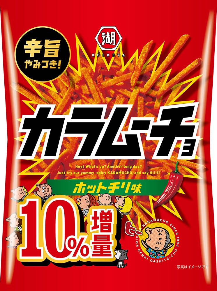 株式会社湖池屋(社長:佐藤章)は、辛味スナックのパイオニア「カラムーチョ」において、日頃のご愛顧に感謝を込めて「スティックカラムーチョ ホットチリ味」「スティックわびさびカラムーチョ 肉ウマわさび」の2品を期間限定で10%増量し、2025年5月26日(月)より全国・全チャネルにて発売します。