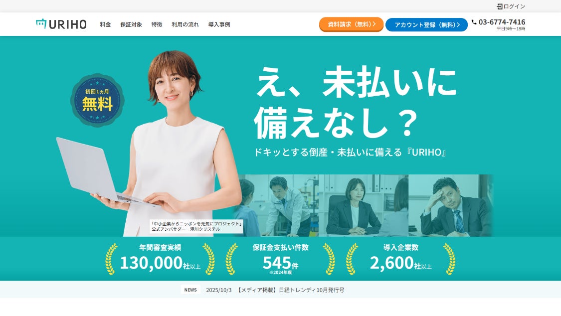 売掛保証サービス「URIHO」「中小企業からニッポンを元気にプロジェクト」に参画 同プロジェクト公式アンバサダー滝川クリステルさんの素材を使用したプロモーションを開始